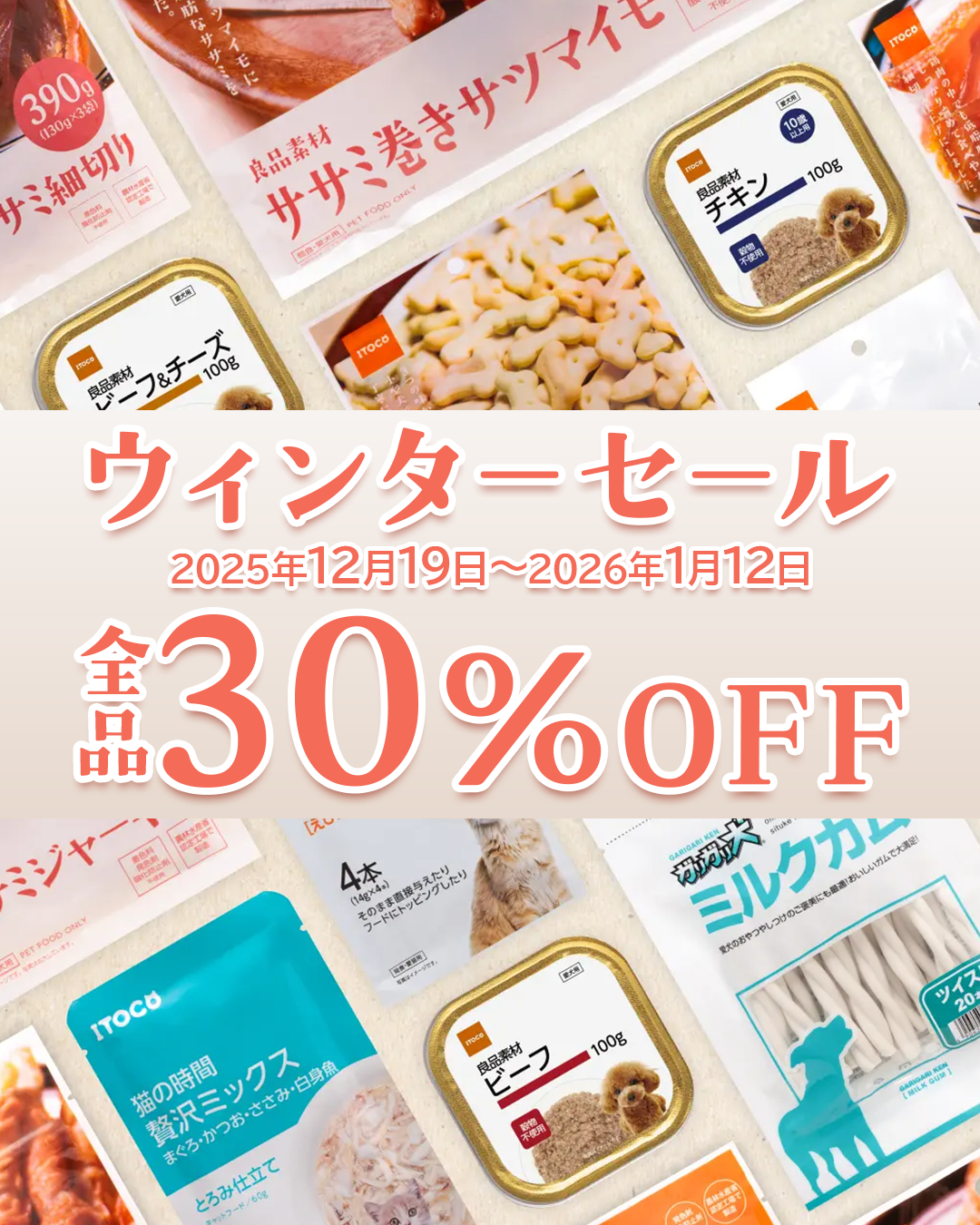 イトウアンドカンパニーリミテッド公式オンラインショップおよびZEAL Pet Food JAPAN公式オンラインショップでは、「ウィンターセール」を実施いたします。