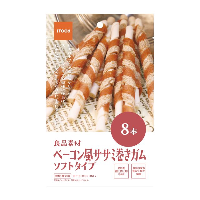 良品素材 ベーコン風ササミ巻きガム ソフトタイプ 8本