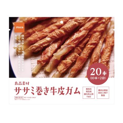 良品素材 ササミ巻き牛皮ガム 20本 (10本×2P)