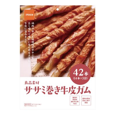 良品素材 ササミ巻き牛皮ガム 42本 (14本×3P)